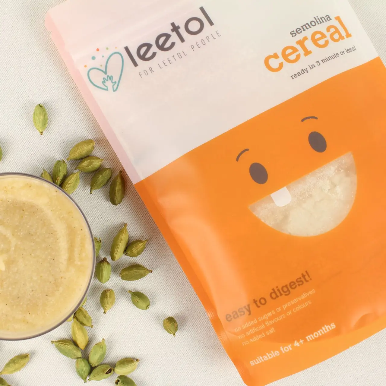 Introducing Leetol's Semolina Cereal, the only one of its kind infused with the natural sweetness of jaggery and the aromatic touch of cardamom, for a delicious and nutritious meal your baby will love. Jaggery is a powerhouse of essential vitamins and minerals, helping to boost energy and aid in digestion, while its high iron content supports healthy growth. The addition of cardamom not only enhances the flavor but also provides antioxidant properties and further assists with digestion, making our unique blend a perfect choice to nurture your little one's well-being.