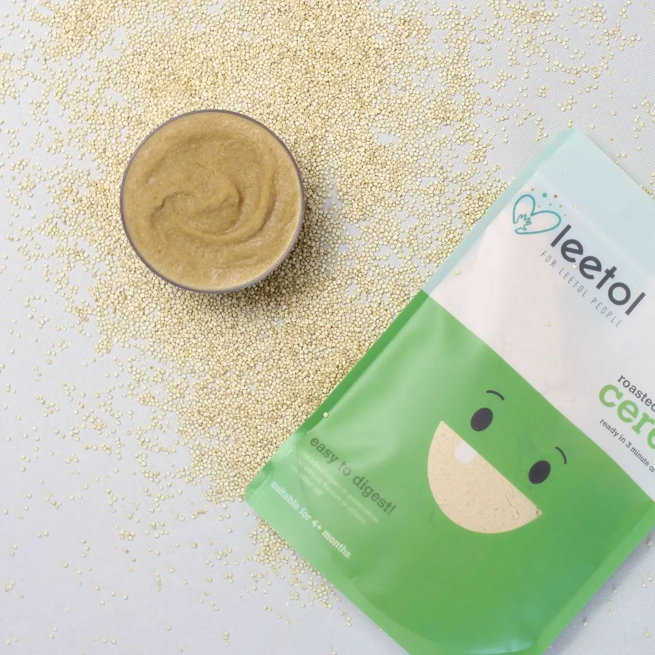 Looking for a cereal that packs a nutritional punch? Leetol’s Roasted Quinoa Cereal is the perfect choice! Made from the ancient superfood quinoa, roasted to perfection, our cereal is loaded with protein, fiber, and essential nutrients, giving your baby the energy they need to grow and thrive.Why choose Leetol? Our quinoa is carefully selected for its rich nutritional profile, offering a naturally gluten-free, plant-based cereal that stands above the rest. While it boasts a deliciously nutty aroma, rest assured—it contains no nuts, making it a safe and wholesome option for your little one. No artificial additives, just pure, roasted goodness.Fuel your little one’s potential with every bite—nourish them the natural way with Leetol!
